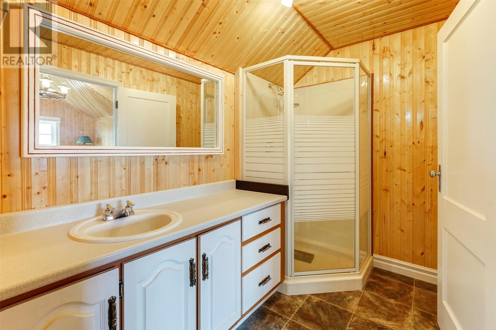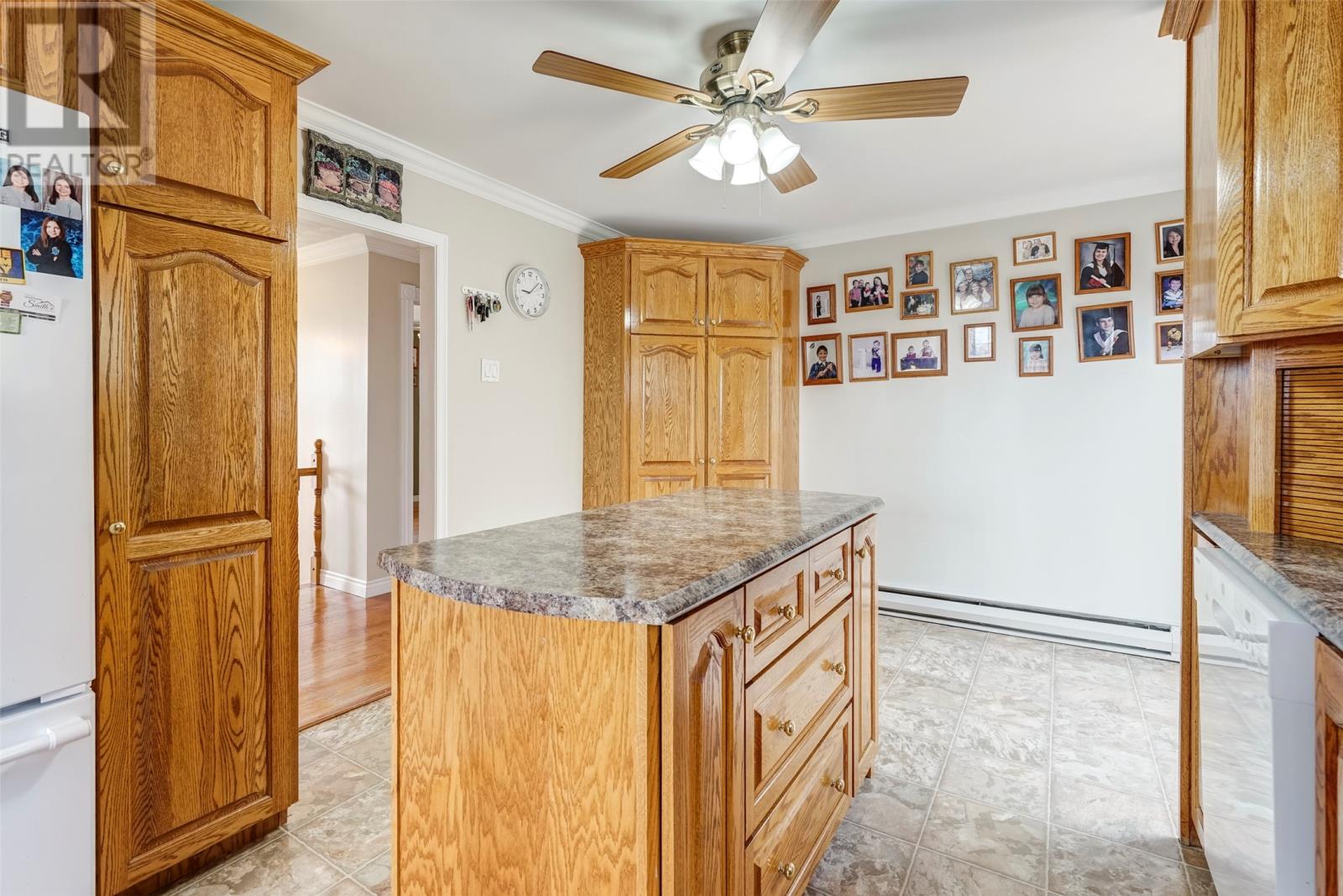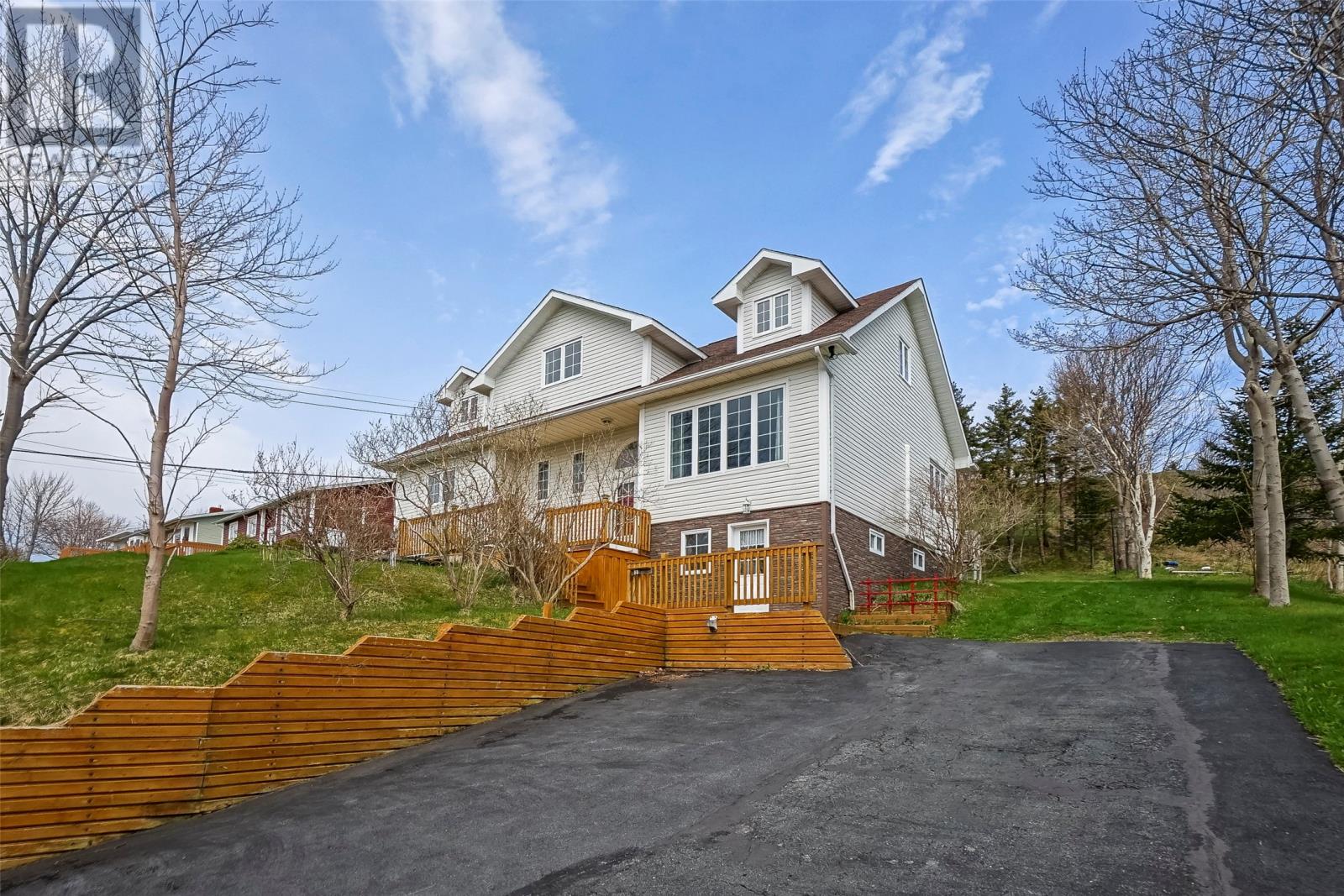 Welcome to 51 Main Road, Upper Island Cove. This 2-storey home has been well maintained an offers a beautiful view of the bay, landscaped grounds, 14' x 20' detached garage, large front deck and spacious back yard. The main floor has a custom eat-in kitchen with appliances included, living room with more water views, three-piece main bathroom and three bedrooms. Provisions have been made to install stairs, but the second floor is currently accessed through a bedroom where you'll find a hobby room, two more bedrooms and a full three-piece bathroom. The basement is highlighted by a large rec room with wood burning stove. Completing the basement is an office, laundry room, storage area and third full bathroom! (id:4069)