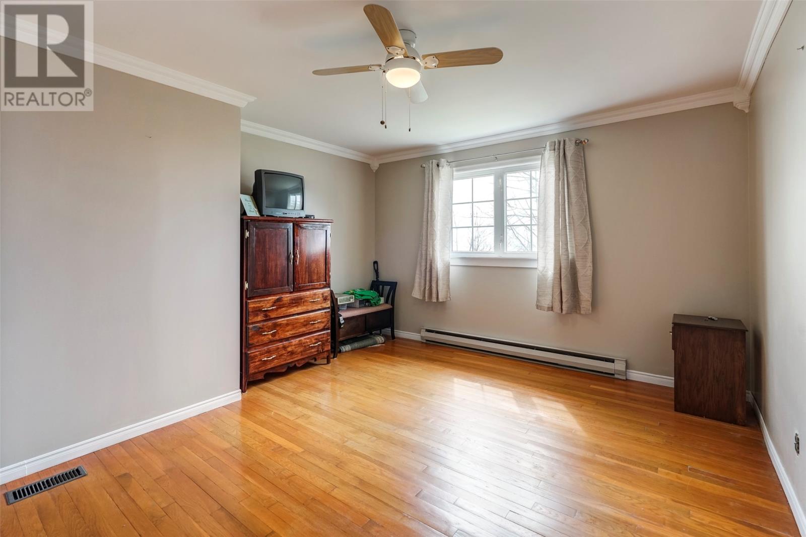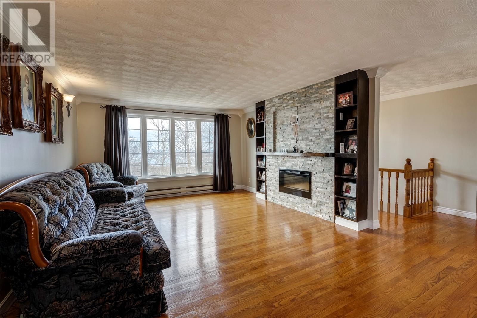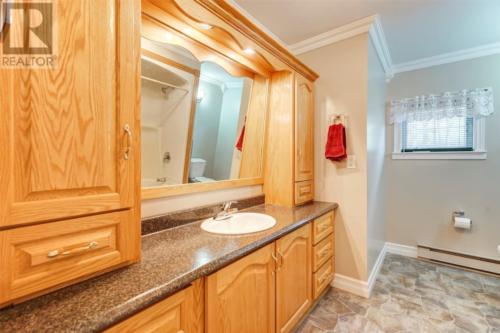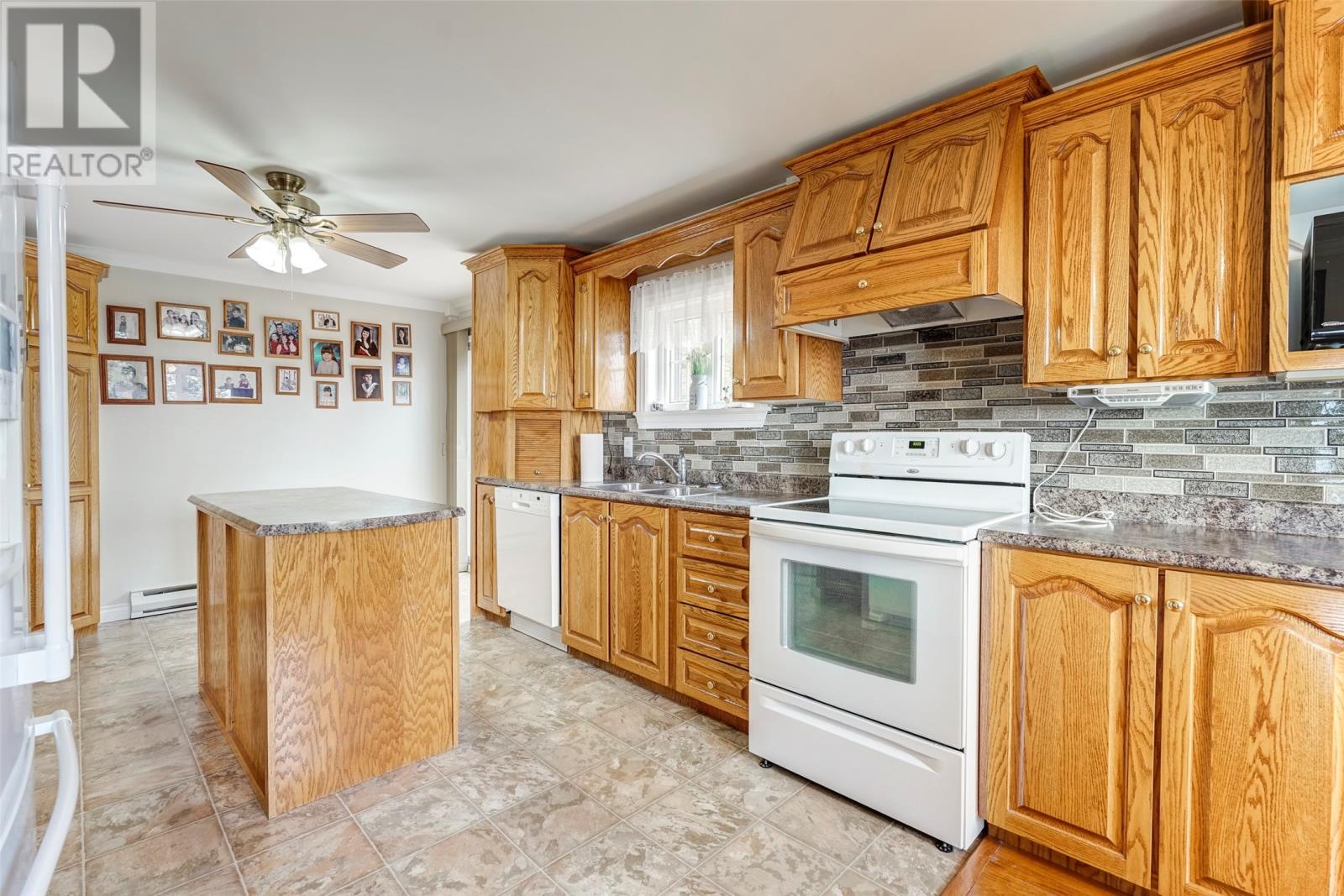 Welcome to 51 Main Road, Upper Island Cove. This 2-storey home has been well maintained an offers a beautiful view of the bay, landscaped grounds, 14' x 20' detached garage, large front deck and spacious back yard. The main floor has a custom eat-in kitchen with appliances included, living room with more water views, three-piece main bathroom and three bedrooms. Provisions have been made to install stairs, but the second floor is currently accessed through a bedroom where you'll find a hobby room, two more bedrooms and a full three-piece bathroom. The basement is highlighted by a large rec room with wood burning stove. Completing the basement is an office, laundry room, storage area and third full bathroom! (id:4069)