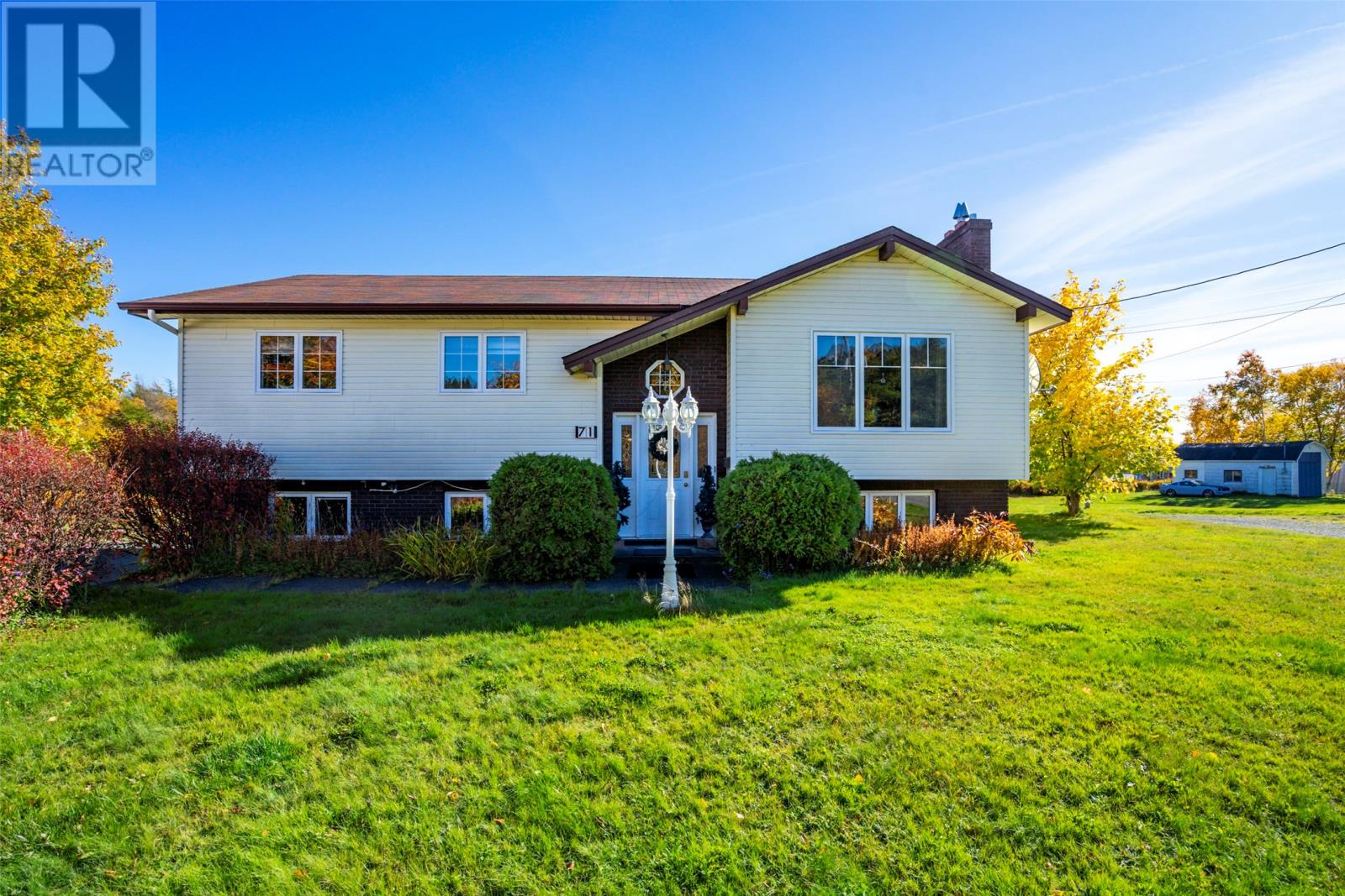 Welcome to 71 - 75 Country Road, Bay Roberts. Centrally located just a short walking distance from all amenities in Bay Roberts, this property features a partially landscaped 0.48-acre lot that has potential to be subdivided, 20' x 32' garage, paved driveway, mini split heat pump system, electric heat, town services and large back deck. The interior of the home has a custom oak kitchen with appliances included, bright dining room and large living room with hardwood floor and propane fireplace. Completing the main floor is three, ample - sized bedrooms and a three - piece main bathroom. The fully developed basement has a large rec room with wood stove, den, laundry room, three - piece bathroom and a storage room. (id:4069)
