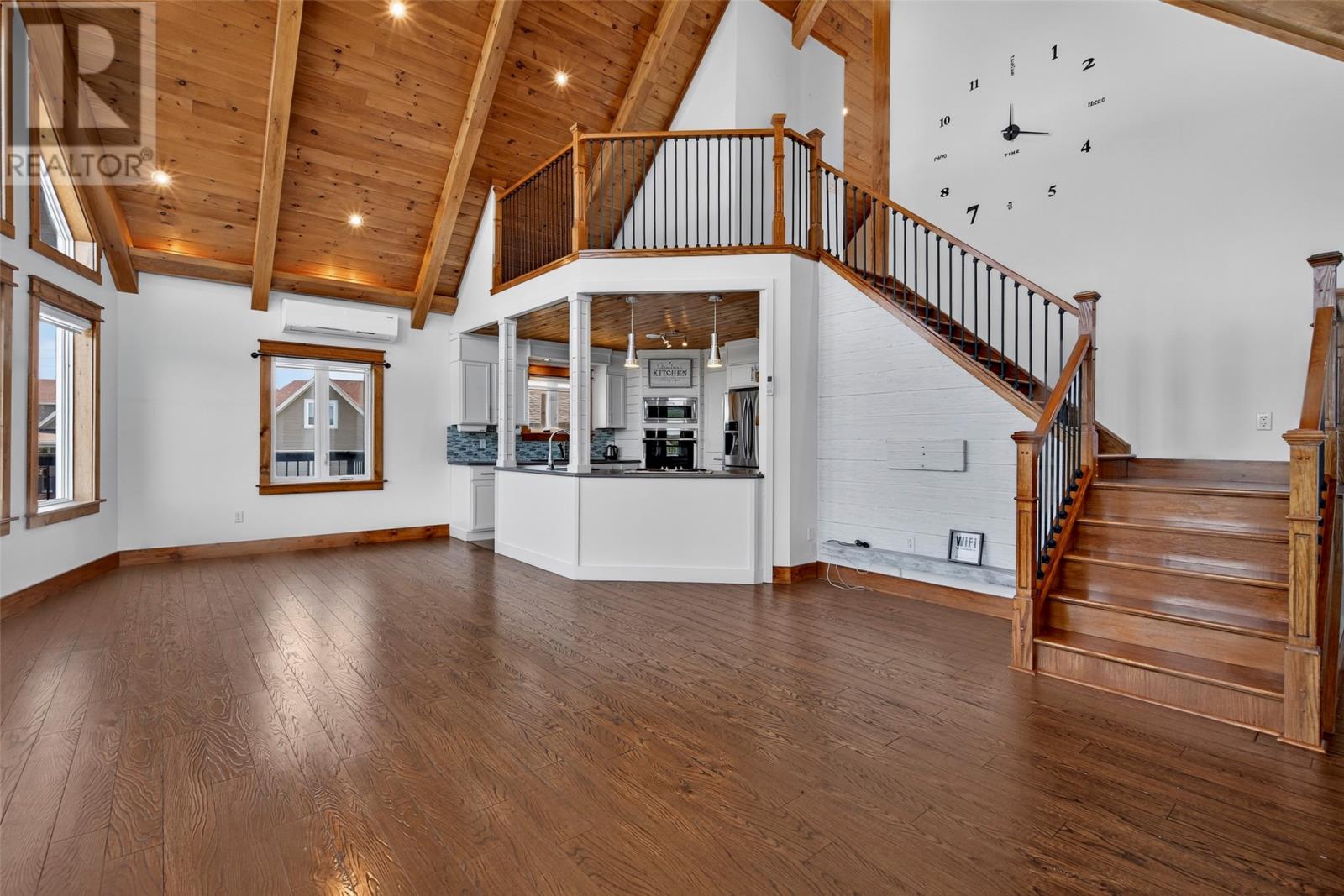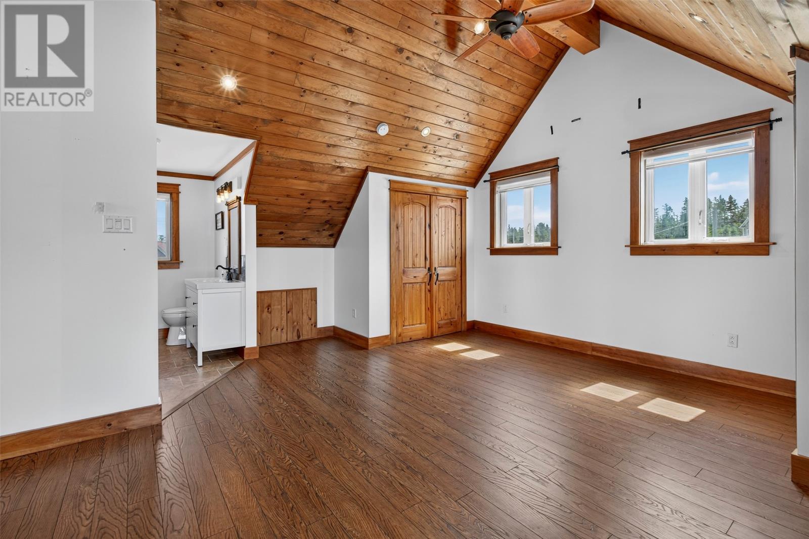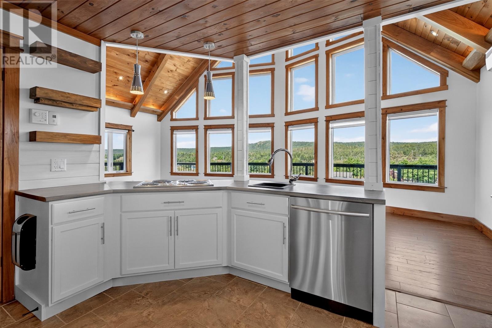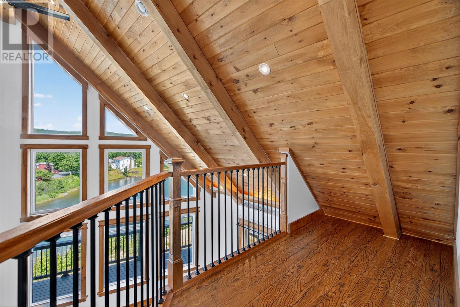 Spectacular property, located on North River in the Town of Clarke's Beach with 104' feet of beautiful water frontage!! Situated on a 0.46-acre lot, the property has landscaped grounds, 24' x 32' 1.5 storey detached (heated) garage with undeveloped loft area, stamped concrete walkways, paved driveway and large front deck for panoramic views of the river. The main floor features an open concept living and dining area with cathedral ceiling, kitchen with appliances included, spare bedroom, three-piece main bathroom and back porch area with laundry nook. The home has electric hot water in-floor heating on all floors with the added efficiency of mini split heat pump systems. The second floor has a small area for an office nook plus a master bedroom complete with a three-piece ensuite and Juliette for enjoying views of the river. The completed basement has a large rec room, third bedroom, porch area, two-piece bathroom and utility room. North River is one of the most beautiful waterways that this province has to offer and is enjoyed regularly for kayaking, fishing, boating and sea doo’s. (id:4069)