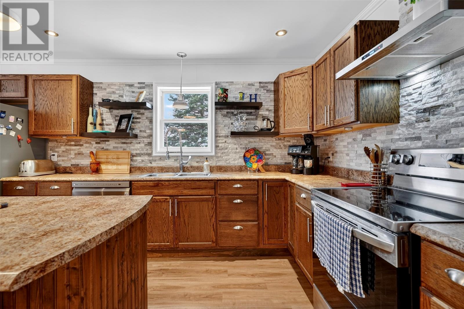 This extensively renovated and updated family home on a landscaped, ocean view lot in a mature and quiet Bay Roberts neighborhood needs a new family to fall in love with it! The home features 5 spacious bedrooms, 3 bathrooms ( 2 of them new!) and a large open concept living-dining-kitchen area complete with an amazing pantry, a shiplap accent wall with fireplace and space for that big screen tv. Did I mention the ocean views? The vendors renovated 3 small bedrooms to create a primary bedroom suite that is is an absolute retreat! It features a four piece spa ensuite, comfortable bedroom, and a combination walk in closet and dressing room with custom shelving and an island! The main floor is completed by a private bedroom with adjoining bath. The bath is the only room in the house that has not been remodeled but a new tub and toilet are included in the sale. The fully developed basement features a huge family room with pine ceiling, an entrance to the yard, and exposed brick to add character! there are also three good sized bedrooms in this area with full egress windows, a new bathroom with a glass and tile shower, 2 storage areas, and a roomy laundry area. Since 2019, the current owners have updated all plumbing and electrical, installed a multi split heat pump system with heads in the living room and basement family room, installed all new lighting, upgraded all insulation, replaced all but one window and replaced all siding In addition, a new 20x24 detached garage was constructed complete with wiring and a heat pump. a private firepit area with custom stone work and a pergola is tucked away beside the garage for your pleasure. This extensively remodeled, deceptively large home has quality finishes and offers a unique opportunity to acquire a solid family home with finishes far above what you would expect at this price point. Renovations to the basement are approx 90% complete with new LVL flooring, trim, and doors remaining to be completed before closing. (id:4069)
