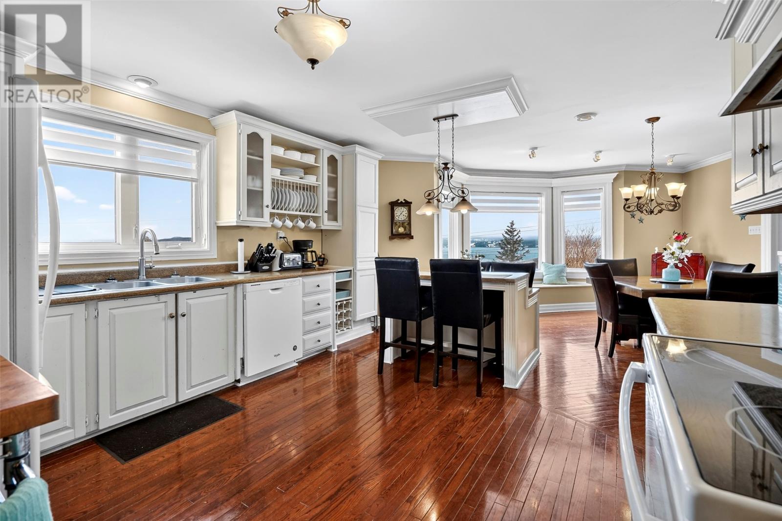 Ocean view living in beautiful Bareneed, Newfoundland! Looking for something truly unique? This three-bedroom, octagon - shaped home offers breathtaking views of two bays and their surrounding communities in Conception Bay North. Exterior features include a 0.7-acre landscaped lot and expansive wraparound deck for soaking in the views. The interior is centered by a large, sunken living room along with a primary bedroom with three - piece ensuite, second bedroom and third bedroom with two - piece ensuite. Completing the main is an executive style, four - piece main bathroom, porch with slate floor, sitting area, laundry nook, custom kitchen with appliances included and dining nook with panoramic ocean views. The basement is mostly undeveloped, making it great for storage, but does boast a rec room complete with bar area. This property would be ideal as a year - round residence, summer home or Air BnB! (id:4069)
