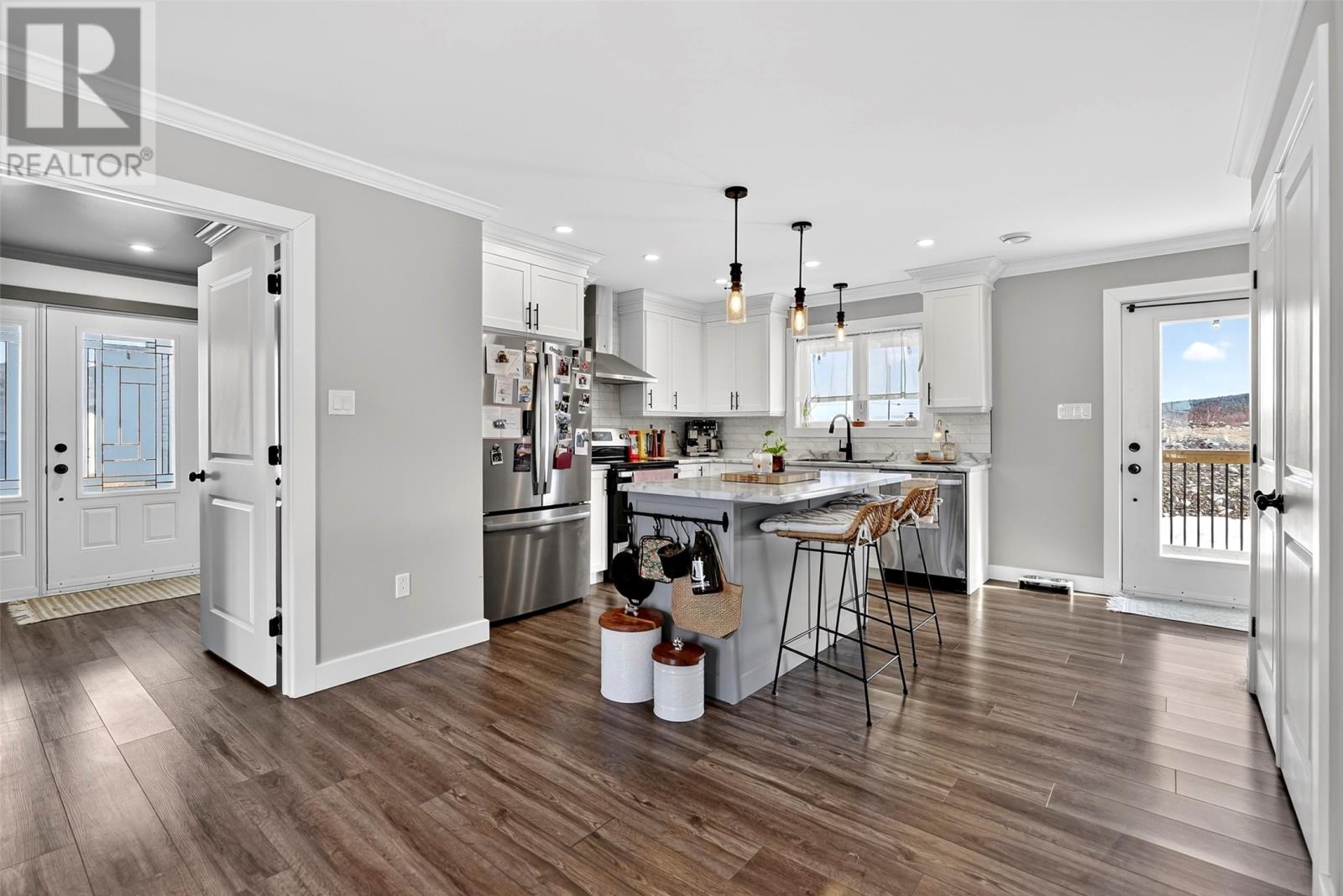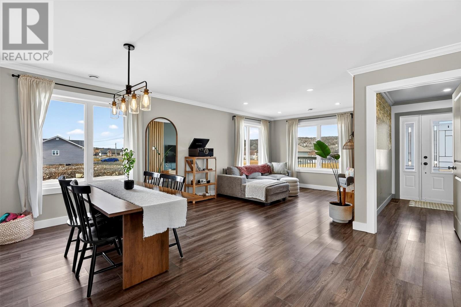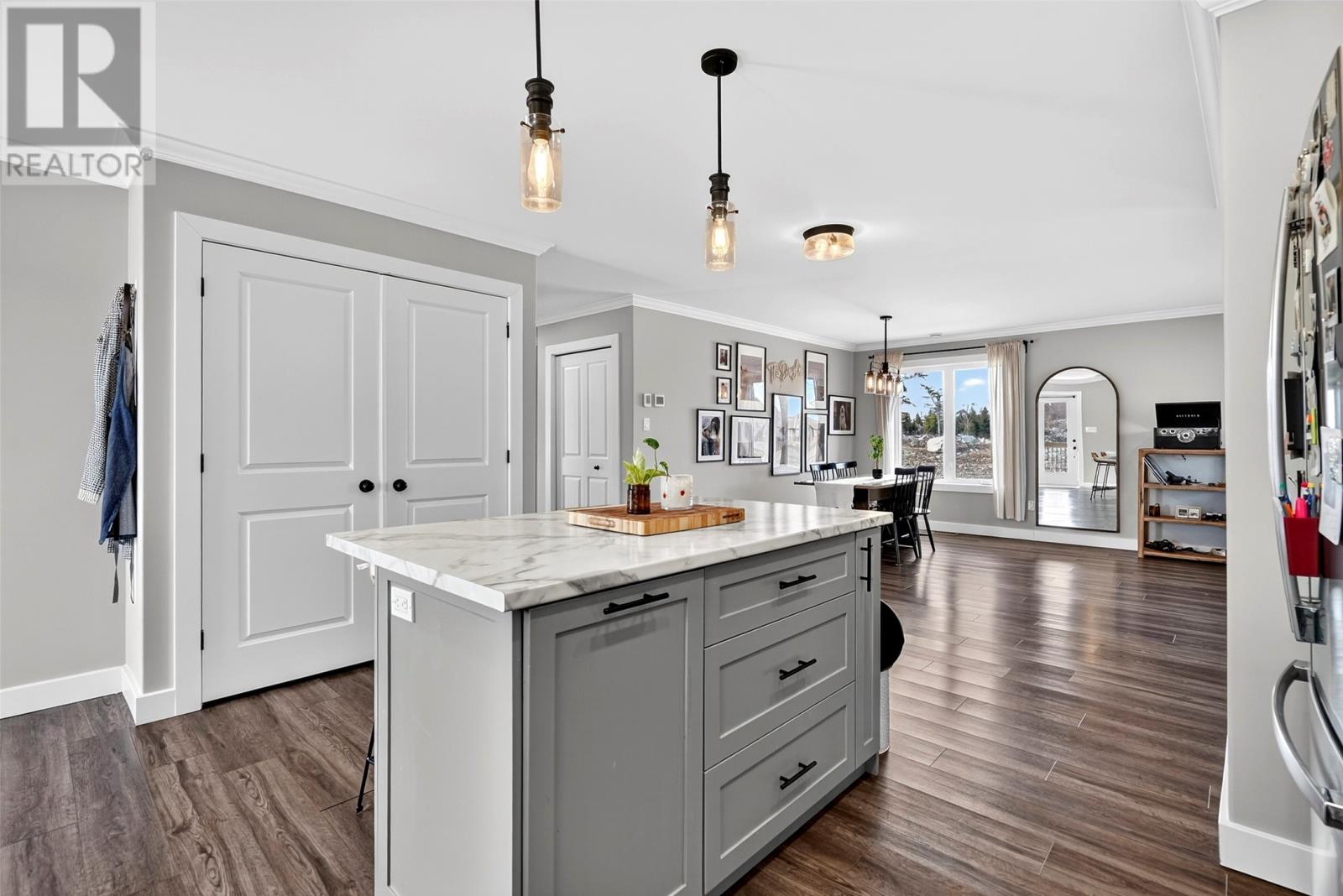 Welcome to 17 Jack Pine Drive in Spaniards Bay, located in the desirable Northern Pines Subdivision. This thoughtfully designed 4 year old home offers a peaceful pond view, a paved driveway, front landscaping, and a spacious backyard—perfect for outdoor enjoyment. The covered front entrance leads to an attached 19' x 20.5' garage, and the entire home is efficiently heated and cooled with a ducted heat pump system for year-round comfort. Step inside to an inviting open-concept layout featuring a custom kitchen with island, large walk-in pantry and included appliances—fridge, stove, dishwasher, and range hood. A convenient laundry nook sits off the mudroom into the attached garage on a convenient landing, while the bright dining and living area provides an ideal space for both everyday living and entertaining. This home offers two well-appointed spare bedrooms, along with a private primary suite complete with a walk-in closet and a modern three-piece ensuite. A stylish three-piece main bathroom serves the rest of the home. The front porch also provides direct access to the attached garage, adding to the home’s overall convenience and functionality. Beautifully finished and move-in ready, this property delivers comfort, efficiency, and contemporary design in a sought-after neighbourhood. (id:4069)
